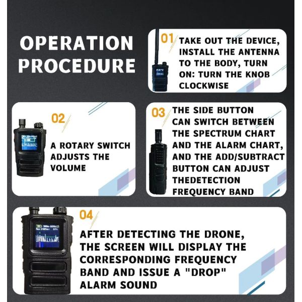 Ultra Wide Full Band Wearable Drone Detector Handheld 300MHz-6000MHz With Sound Light Images |